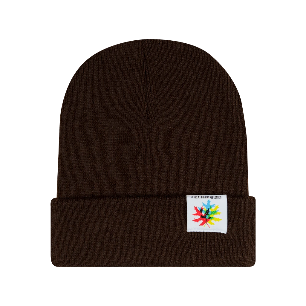 LA Apparel cuffed acrylic beanie with leaf logo label.