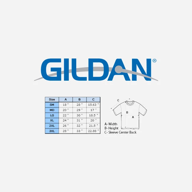Printed on Gildan 100% Cotton.