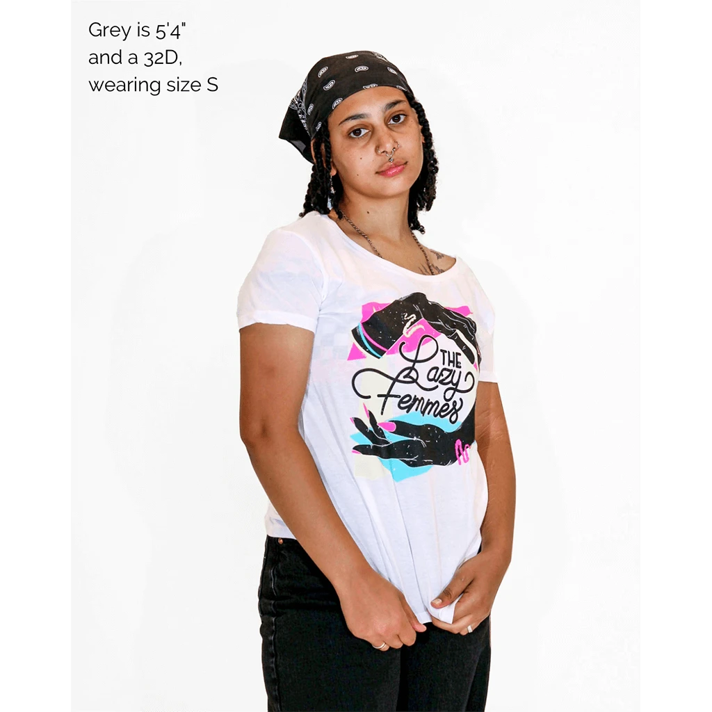 Designed by Kirstin Bencomo-Cooper . Printed on a relaxed, scoop-neck women’s style tee.
