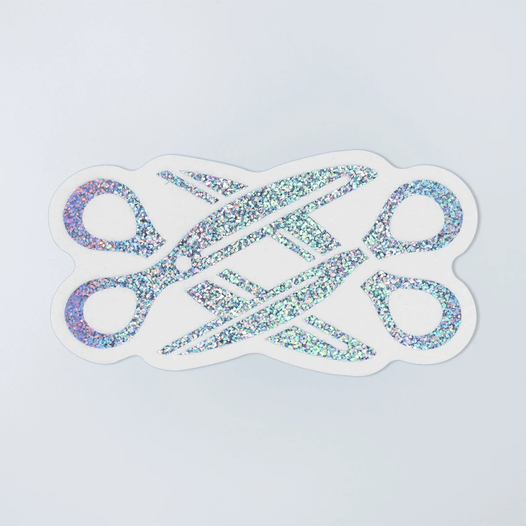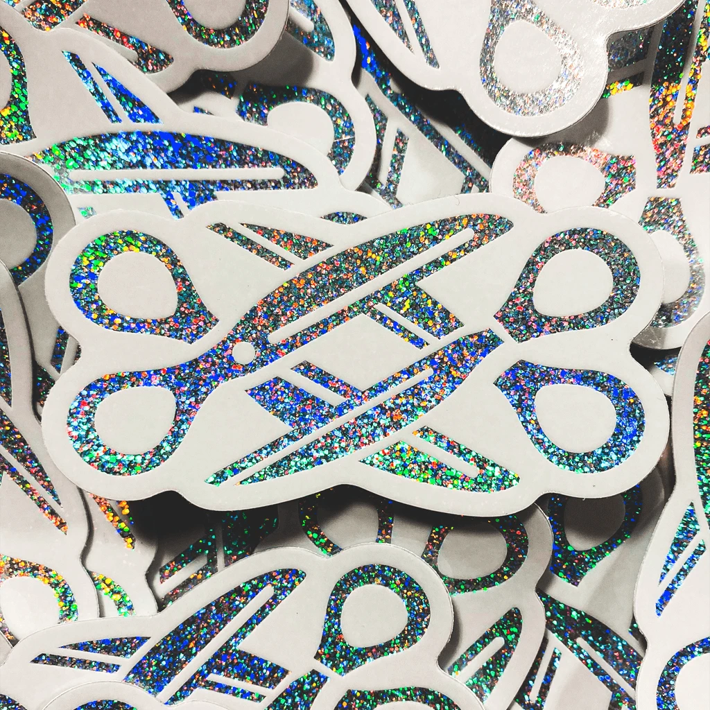 3” x 1.6”. Printed on shimmery stardust vinyl.