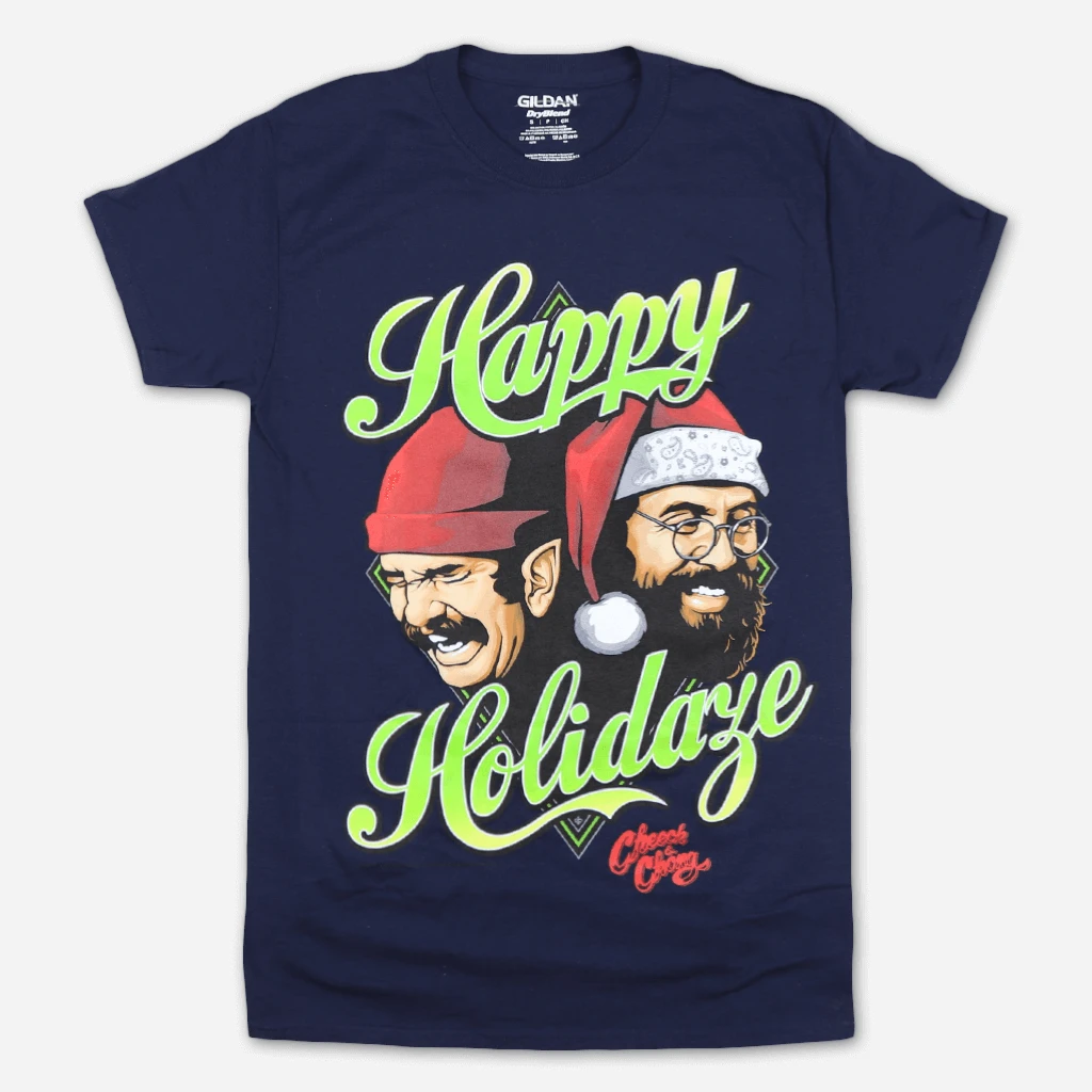 A men’s traditional fit 18/1 cotton tee featuring a Cheech & Chong graphic on front. Navy.