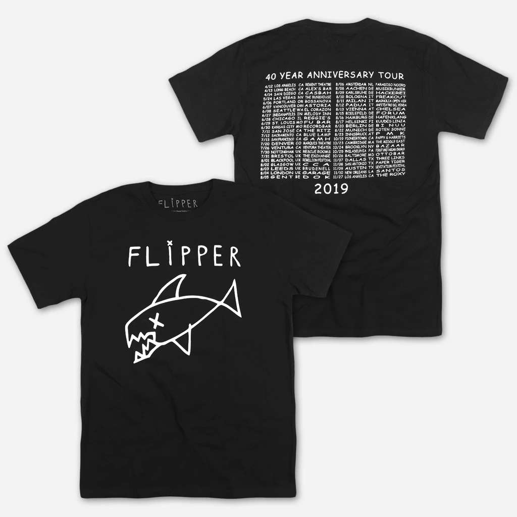 Flipper 40th Anniversary Classic Long Fish Black T-Shirt New Merch