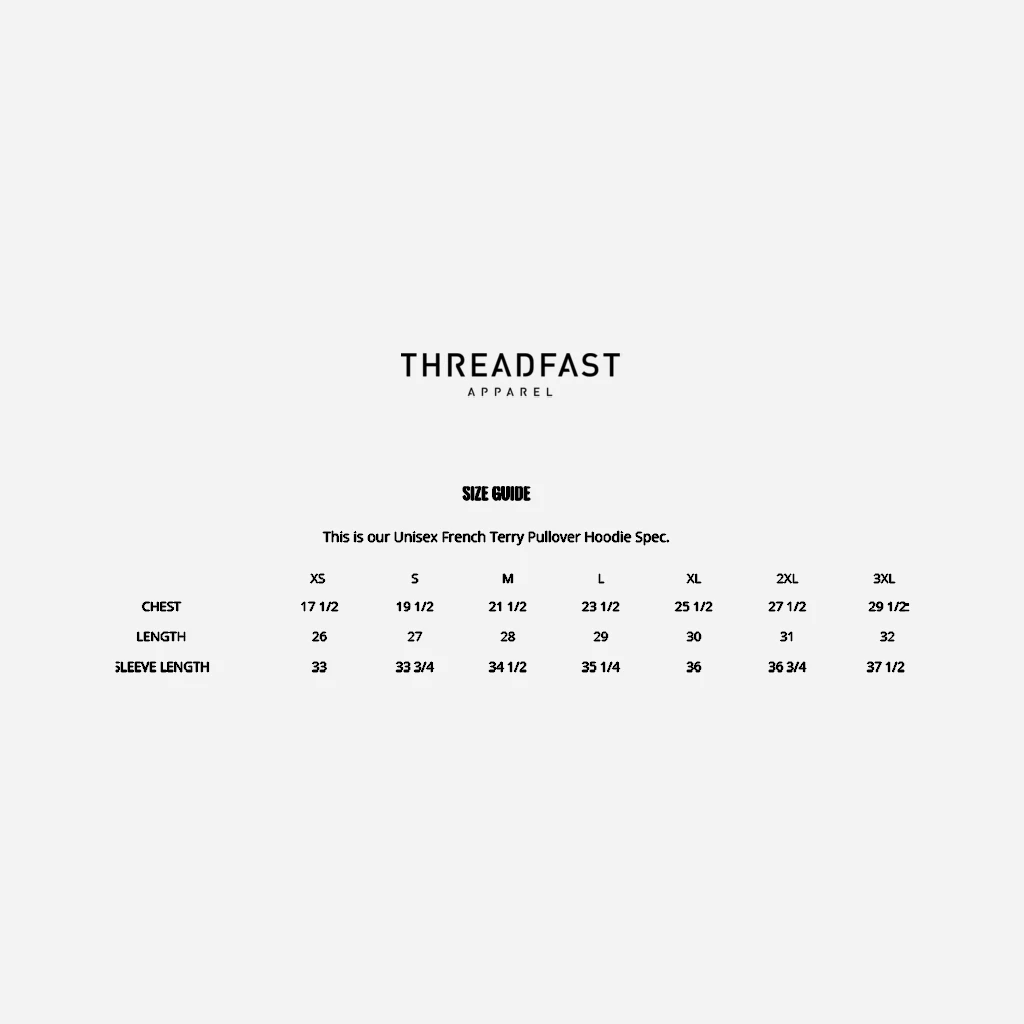 Printed on Threadfast Apparel 8 oz., 55% Combed Ringspun Cotton, 35% Polyester, 10% Rayon.