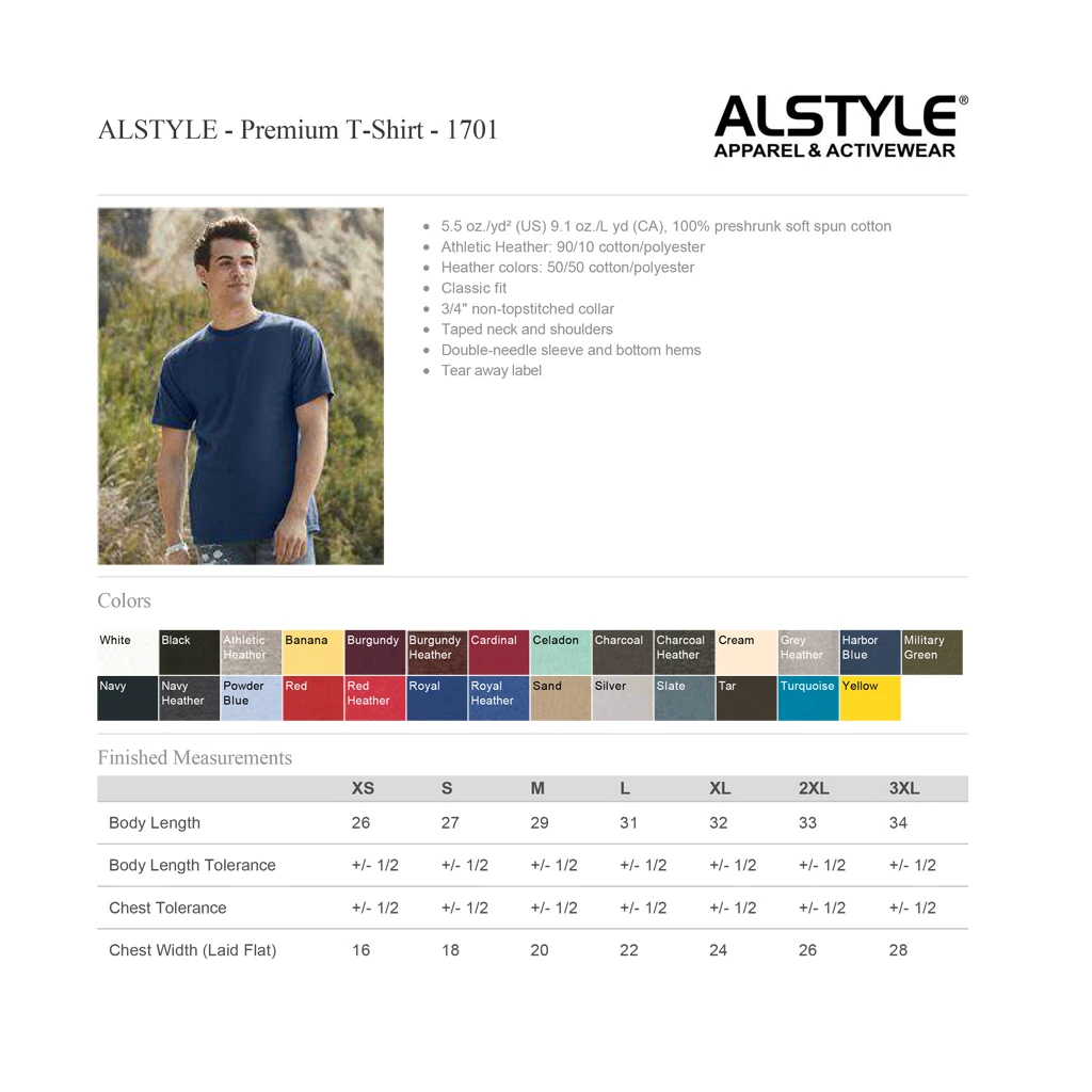 2XL is printed on Alstyle, 100% Preshrunk Cotton.