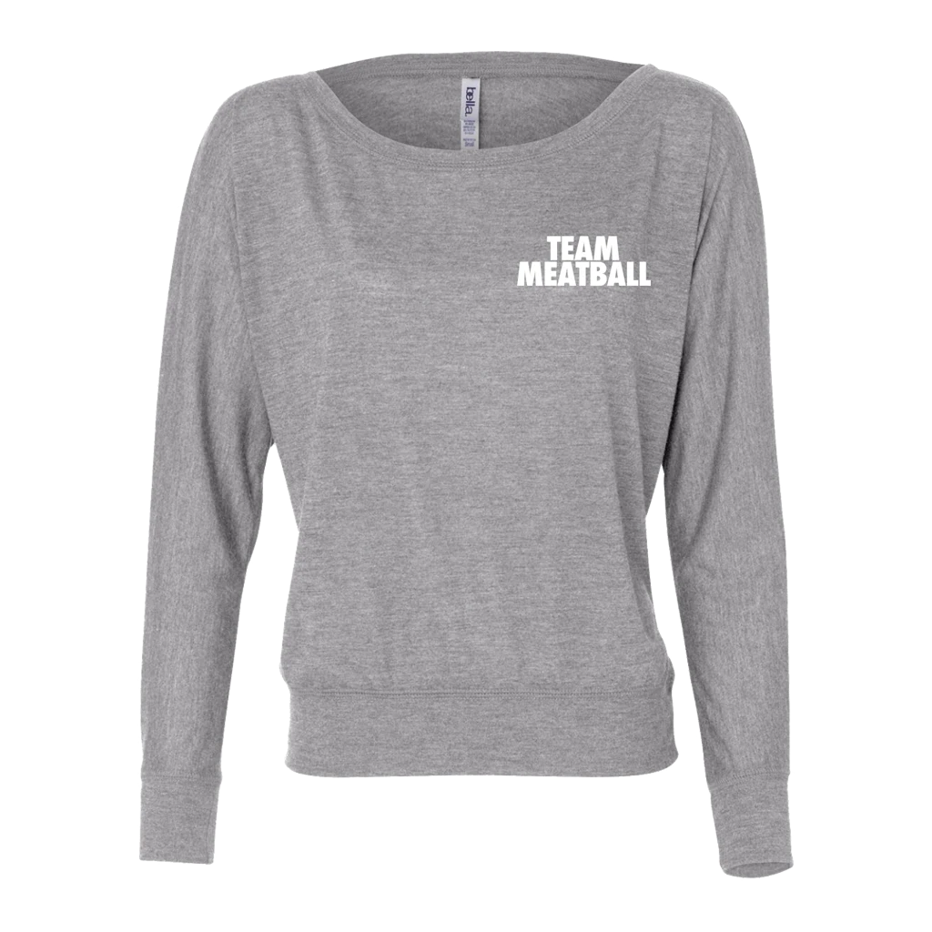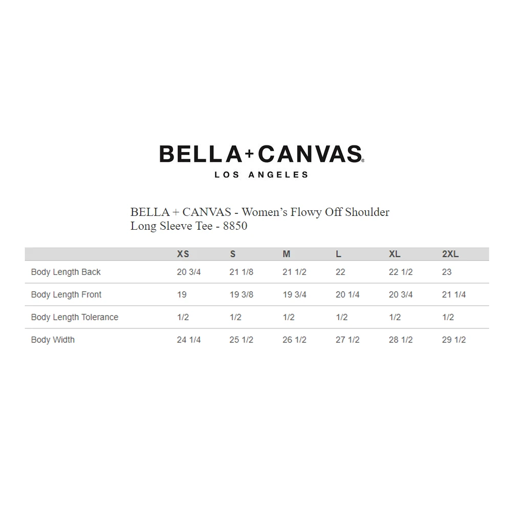 Printed on Bella+Canvas Athletic Heather Off Shoulder Long Sleeve.