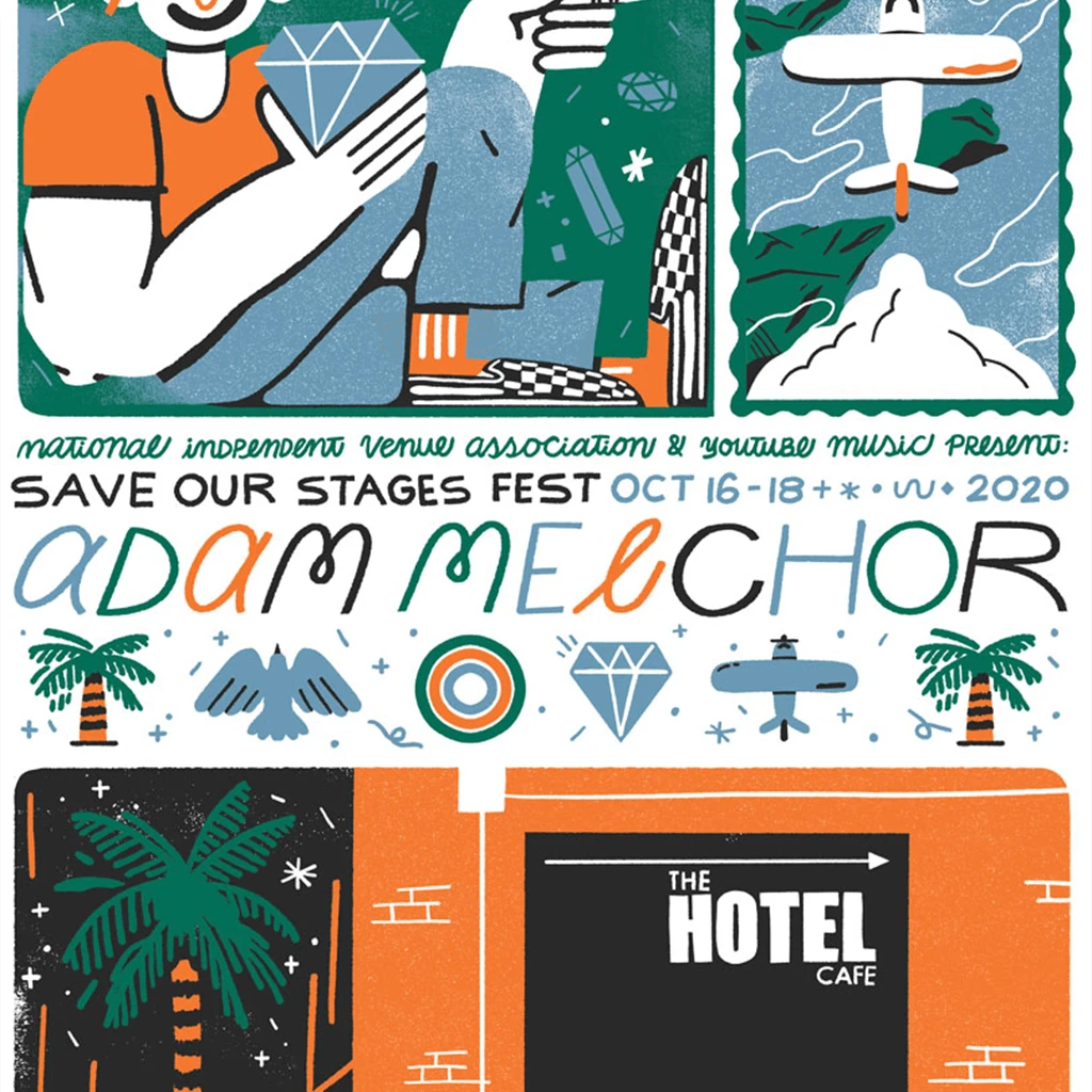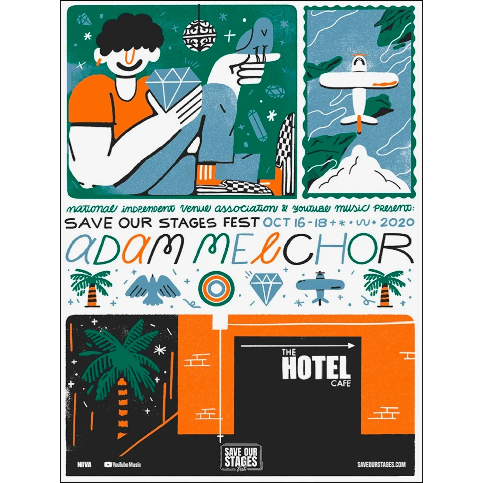 Limited Edition Screen Print Commemorating Adam Melchor’s Performance at Hotel Cafe for the Save Our Stages Fest.