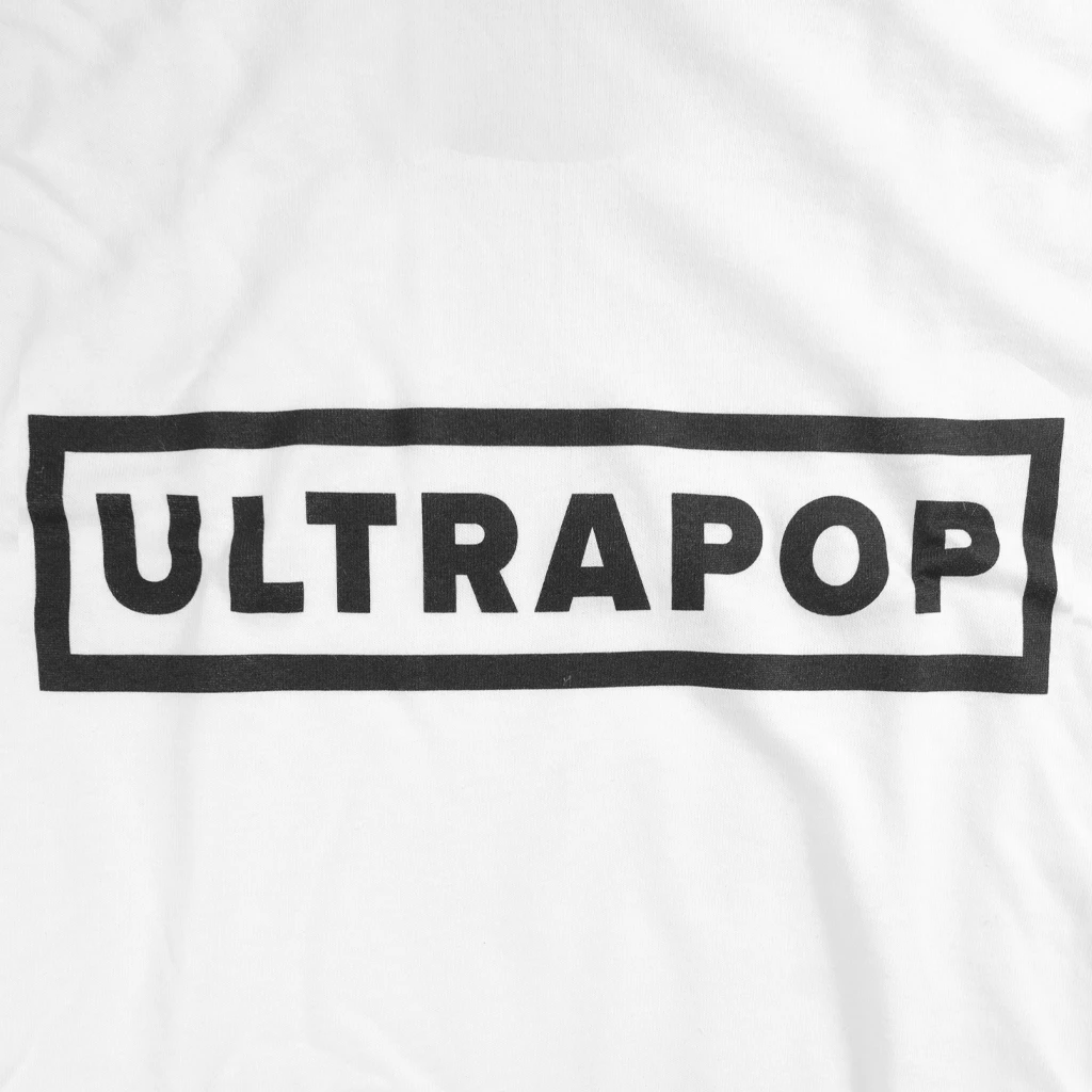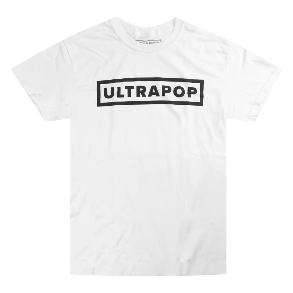 Iconic ULTRAPOP logo emblazoned on a standard cotton tee. Available in black and white.